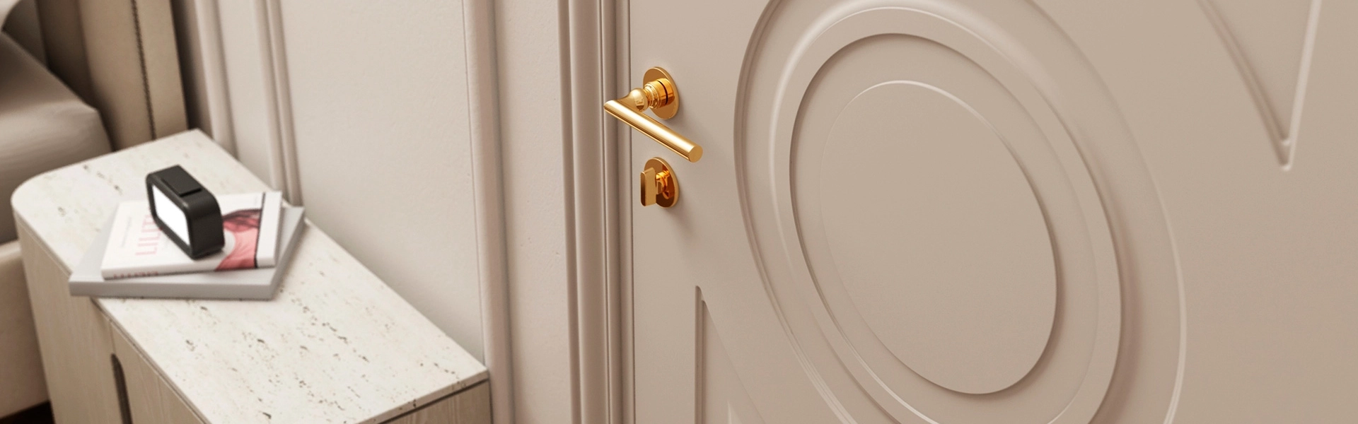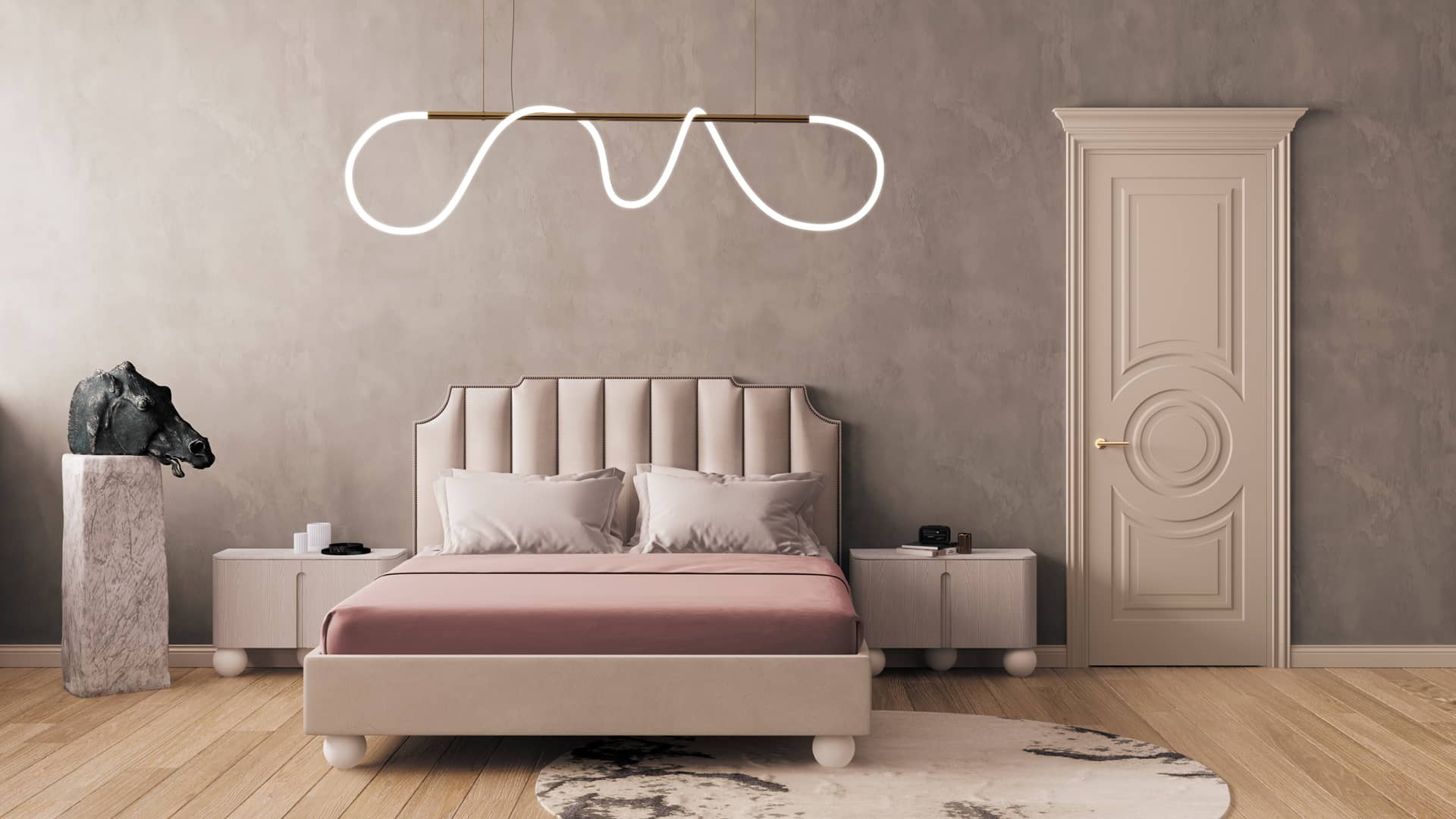 Маскот (в переводе с англ. «талисман») — классическая коллекция с мягкими и элегантными элементами на полотне. Объёмный круг, украшающий одну из форм, символизирует объединение пространств и становится центральным элементом коллекции. Рисунок на цельной поверхности полотна выполнен с помощью технологии фрезерования.