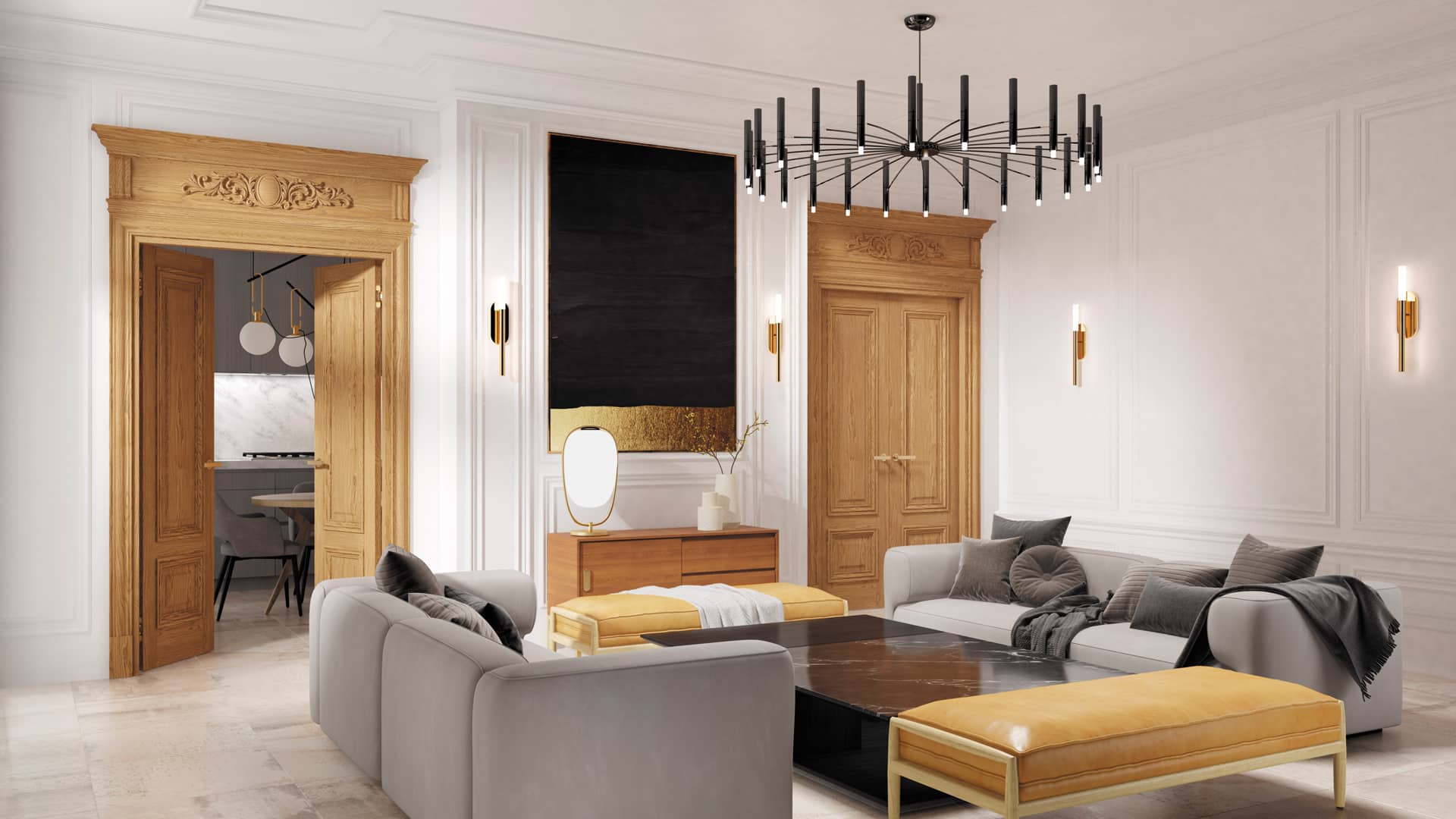 Коллекция дверей из массива ценных пород дерева с объёмными элементами на полотне. Отличительной особенностью коллекции является декоративное обрамление портала, повторяющее архитектурные формы XV века.