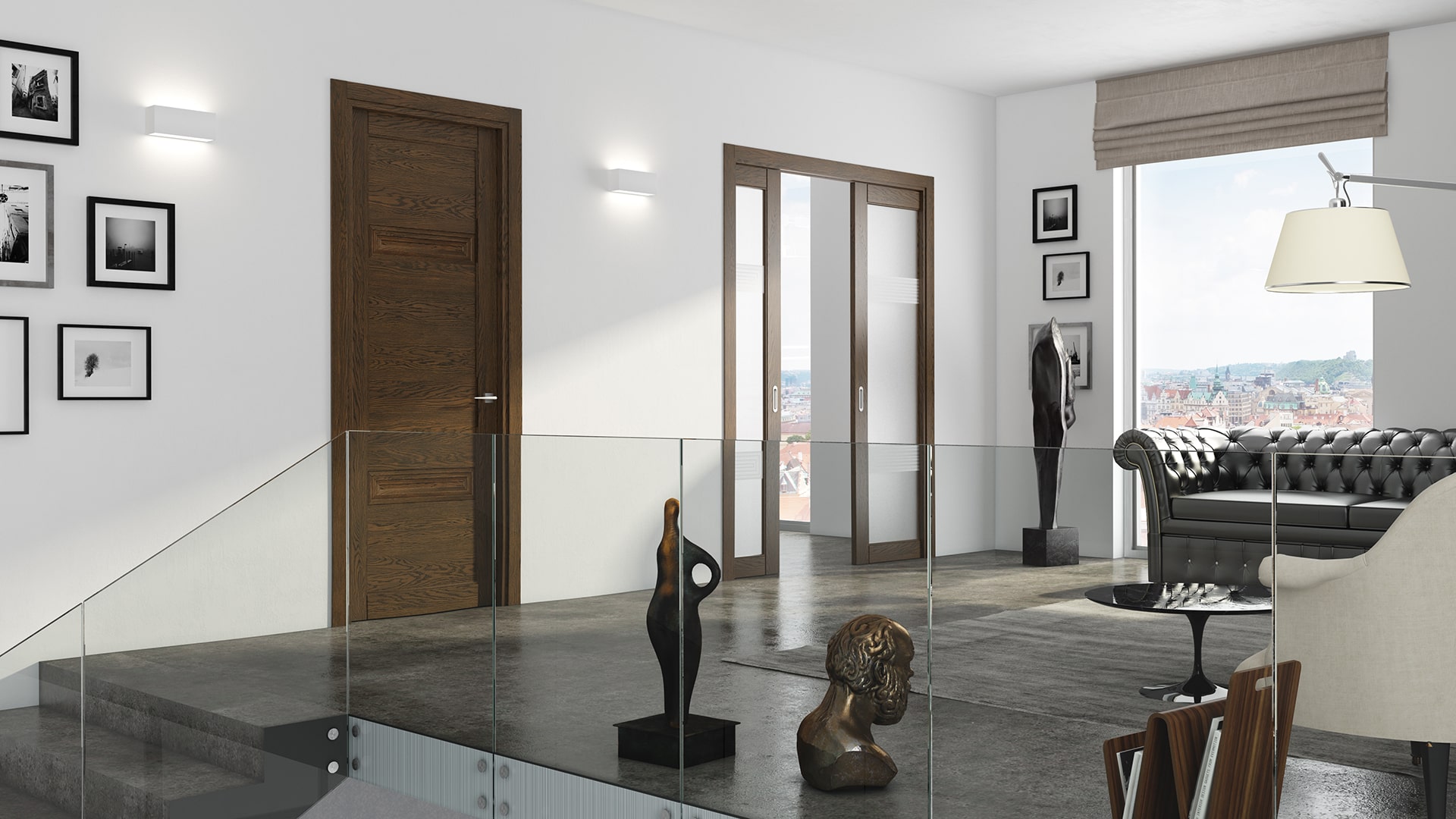 Эго — коллекция из массива кавказского дуба, объёмные элементы в дизайне дверей органично сочетаются с естественной фактурой натурального дерева. Дополняют коллекцию остекленные полотна.