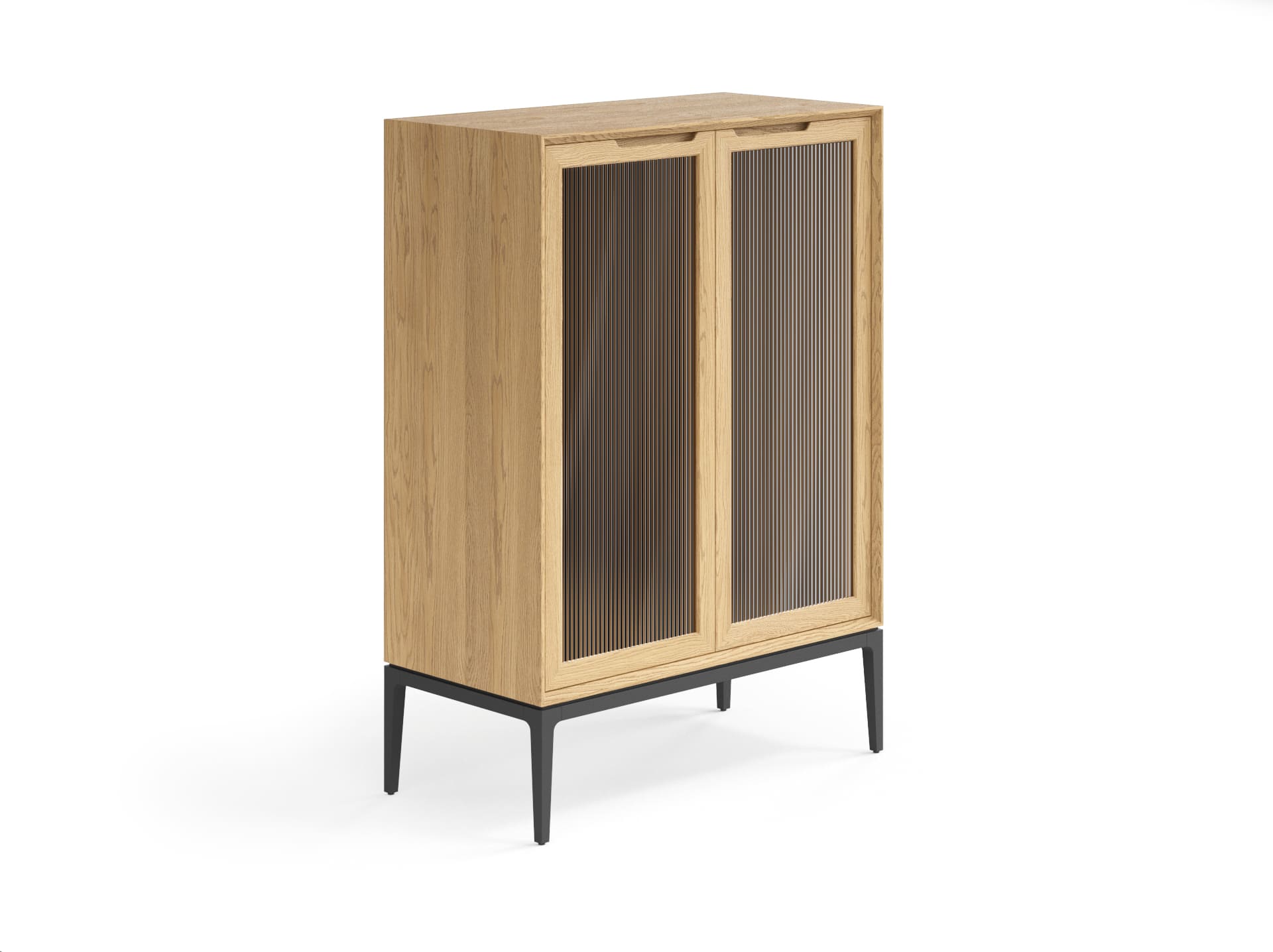 Фрезерованные ручки на фасаде подчёркивают элегантность изделия, благодаря удобному захвату пользование витриной становится максимально комфортным.