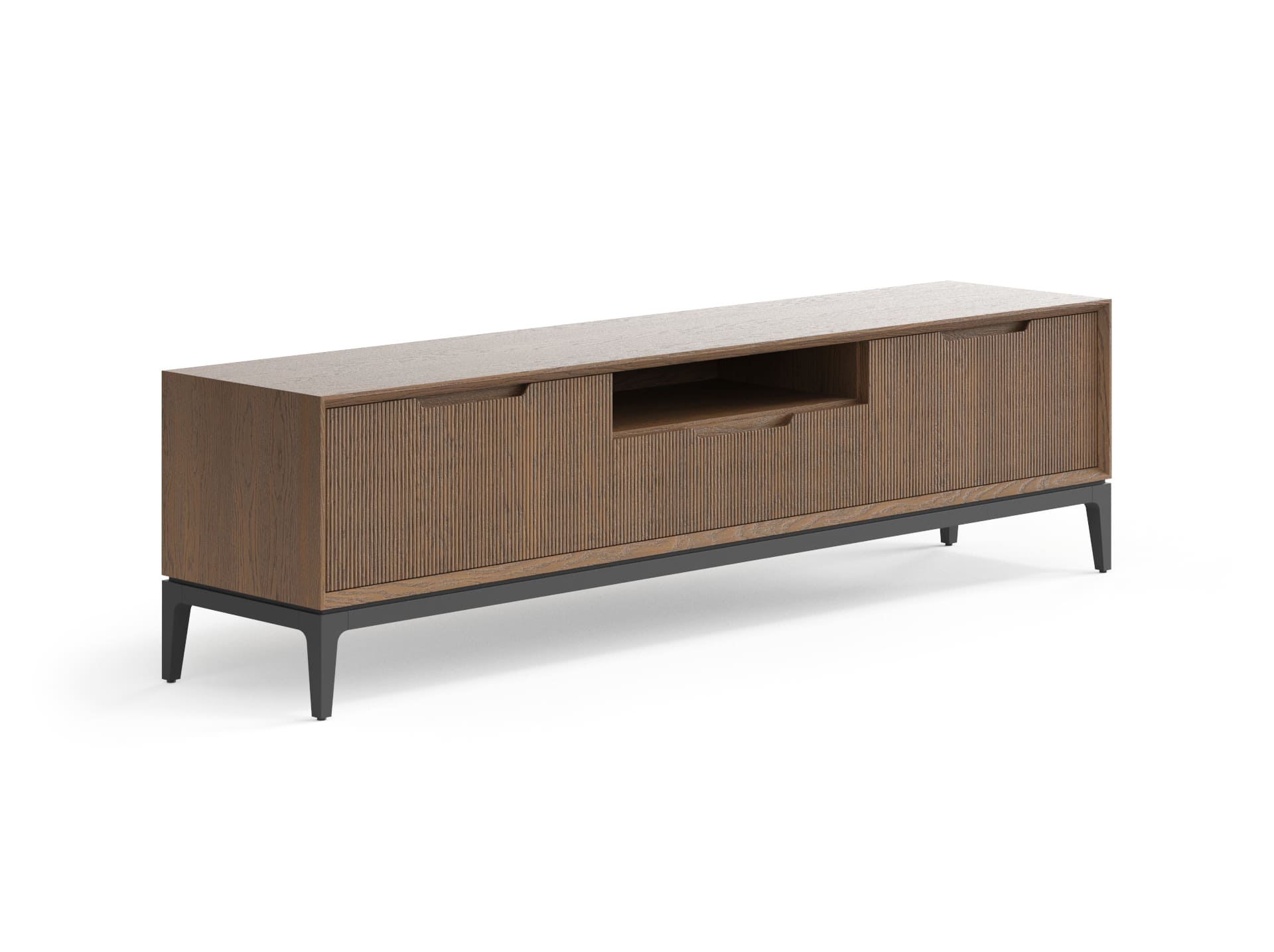 Стильная ТВ тумба гармонично впишется в вашу гостиную и сделает зону отдыха приятной и комфортной. Боковые дверцы и центральный выдвижной ящик позволят разместить все необходимые вещи за фасадами с рельефной фрезеровкой. Ничто не будет отвлекать вас от отдыха и просмотров любимых фильмов.