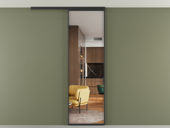 Во всех алюминиевых перегородках, независимо от типа установки, используется компланарный раздвижной механизм, благодаря которому декоративная крышка и полотно находятся в одной плоскости.