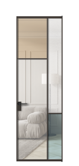 Лаконичный разделительный профиль внутренней раскладки полотна обеспечивает эстетический внешний вид конструкции и идеальную стыковку вставок из стекла.