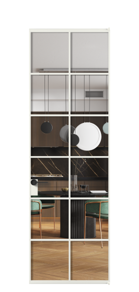 Минималистичный профиль повторяет форму профиля алюминиевых раздвижных перегородок Формато, что позволяет легко сочетать оба решения в одном пространстве.